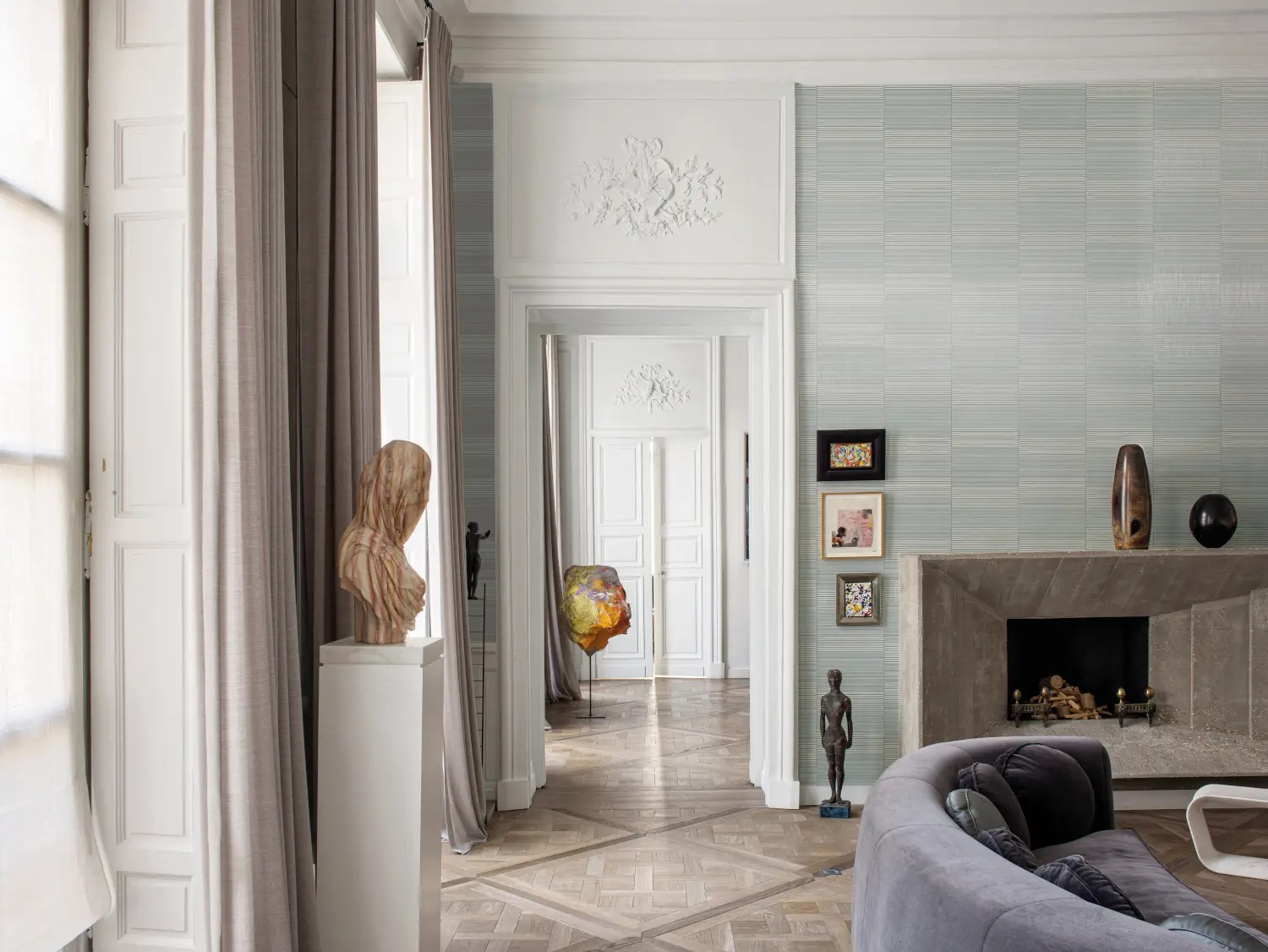 Обои украшены геометрическим узором из элегантных, блестящих горизонтальных линий, напечатанных на металлическом или матовом фоне, в зависимости от цветовой гаммы. Дизайн вдохновлен японской эстетикой и создает стильную атмосферу. Изделие изготовлено на высококачественной нетканой основе. Это значительно упрощает его монтаж: на стену наносится клей, и панели приклеиваются непосредственно к стене.