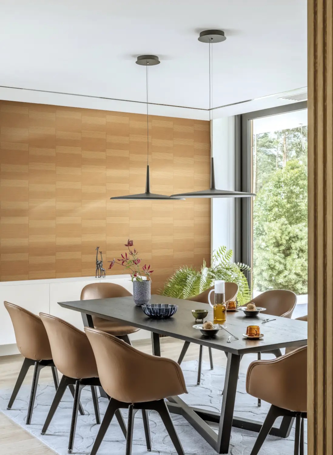 Обои украшены геометрическим узором из элегантных, блестящих горизонтальных линий, напечатанных на металлическом или матовом фоне, в зависимости от цветовой гаммы. Дизайн вдохновлен японской эстетикой и создает стильную атмосферу. Изделие изготовлено на высококачественной нетканой основе. Это значительно упрощает его монтаж: на стену наносится клей, и панели приклеиваются непосредственно к стене.
