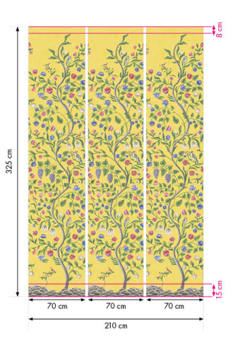 Этот дизайн «Древа жизни» взят непосредственно с кожаных настенных покрытий в столовой особняка Бейтманс в Восточном Суссексе, построенного в эпоху Якова I. Сложные узоры, подобные этим, были вдохновлены индийскими ситцами XVII века, на которых часто изображались извилистые цветущие деревья с птицами на ветвях. Кожаные покрытия появились раньше обоев в том виде, в каком мы знаем их сегодня, и хотя для создания таких панелей требовались другие навыки, процесс наклеивания ранних обоев и их декоративный эффект в комнате очень похожи. Мистер и миссис Редьярд Киплинг, уроженцы Голландии, заплатили за них 100 гиней в 1902 году, недавно купив Бейтманс в качестве семейного дома. Бумажные версии напечатаны на широком (70 см) рулоне, а узор адаптирован для лёгкого и непрерывного повторения вдоль стены.