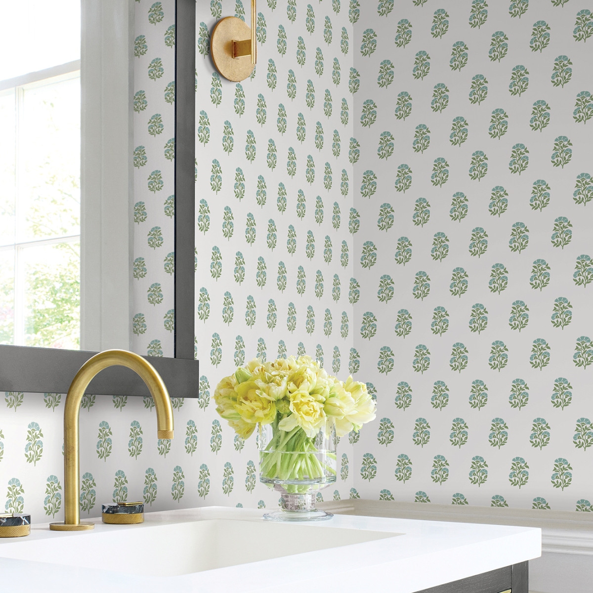 В дизайне Sylvie нежные распускающиеся цветы расположены в заданном ритме на светлом фоне.