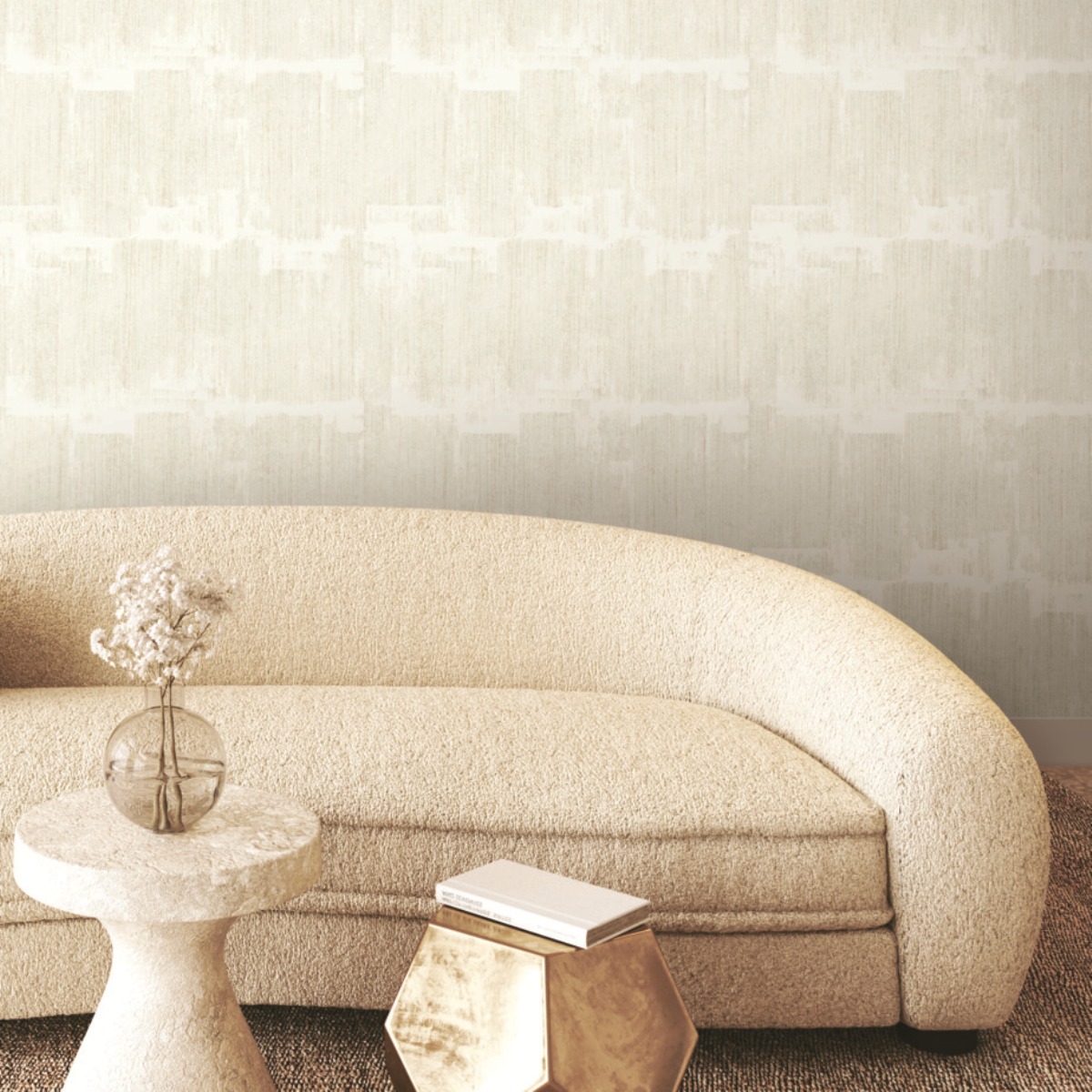 Абстрактный дизайн в полоску от Rhythm & Rhyme состоит из крупных блоков в заданном ритме, украшенных деликатным перламутровым блеском.