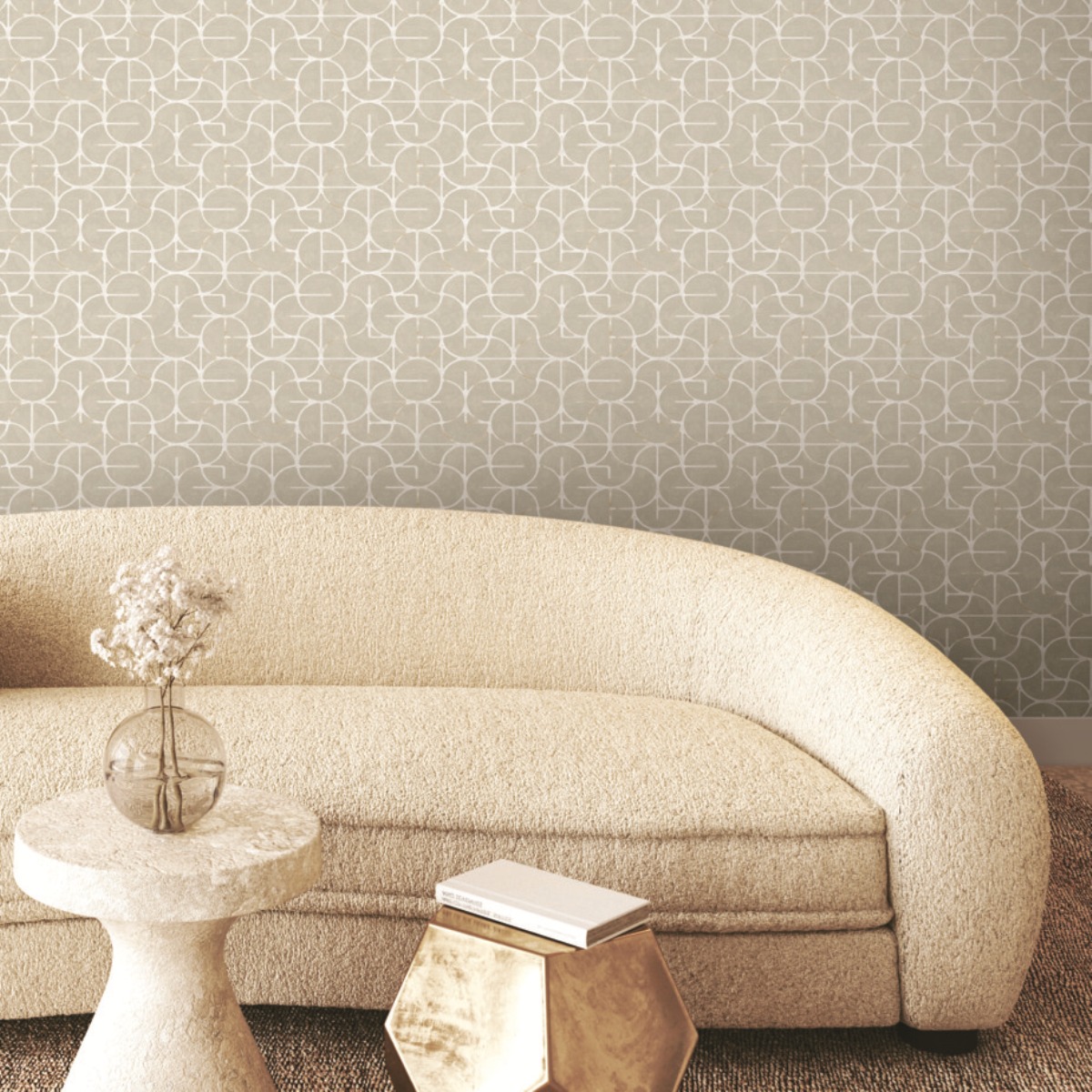 Геометрический узор Looking Glass включает в себя вневременной орнамент oggi c дополнительными элементами, украшенный металлизированными бликами.