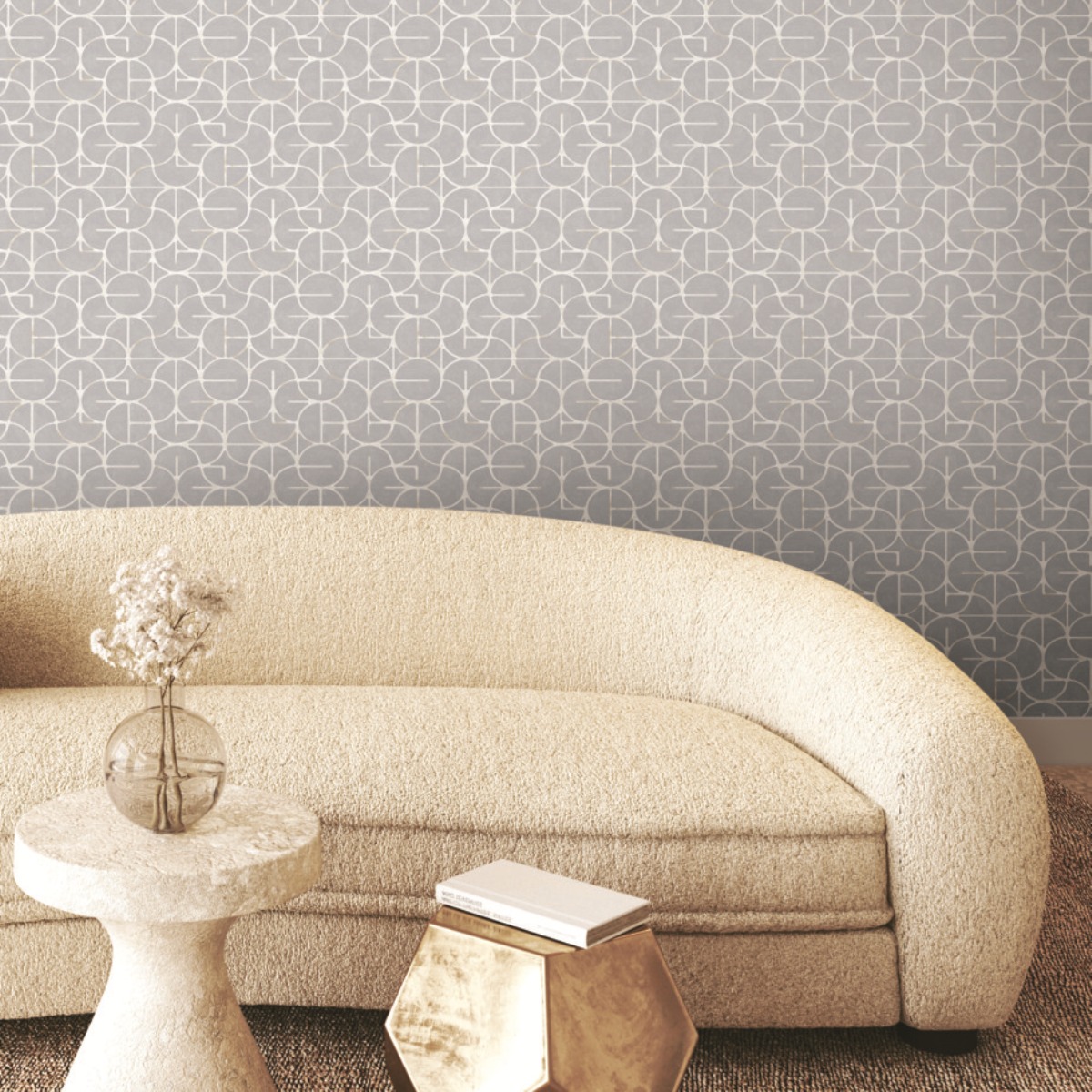 Геометрический узор Looking Glass включает в себя вневременной орнамент oggi c дополнительными элементами, украшенный металлизированными бликами.