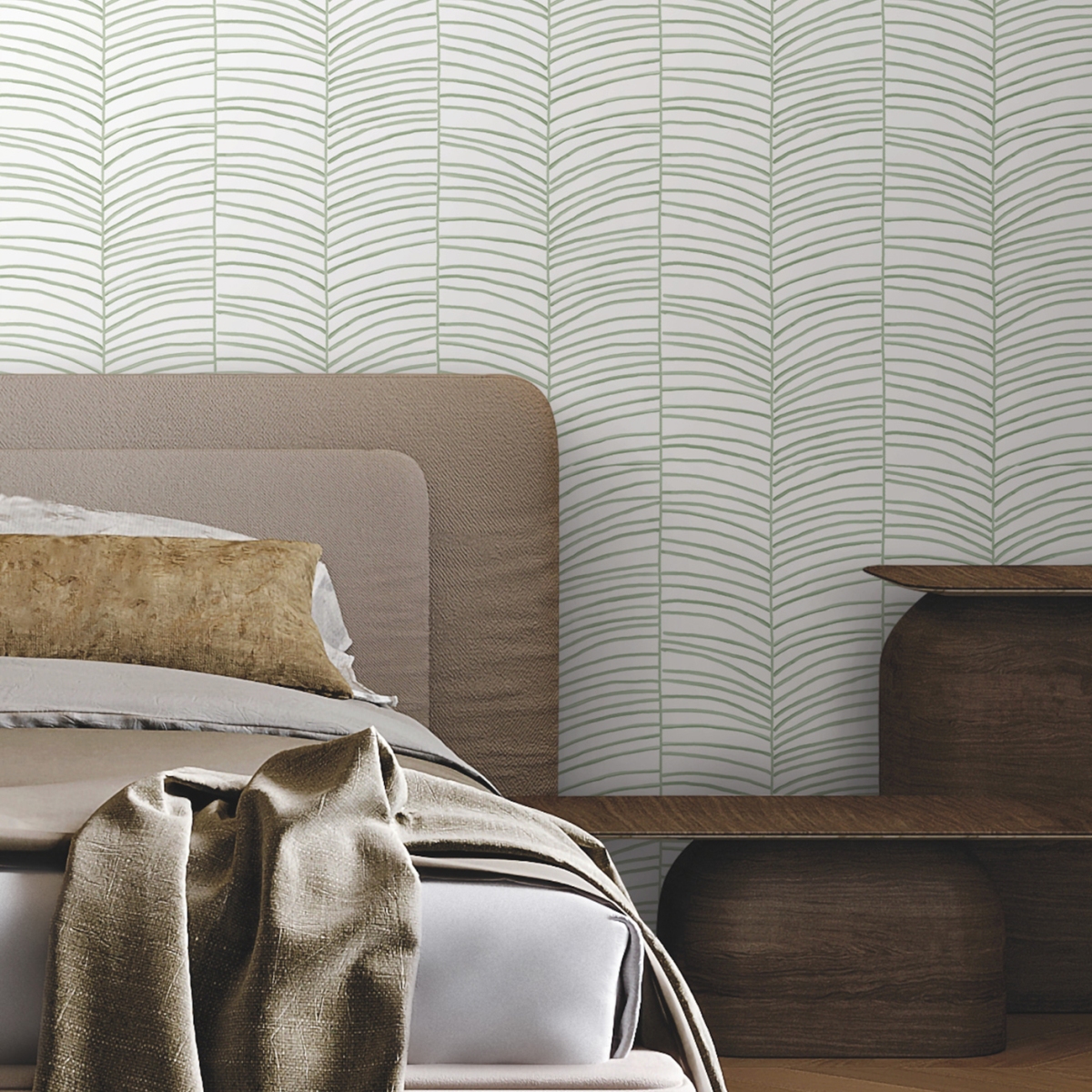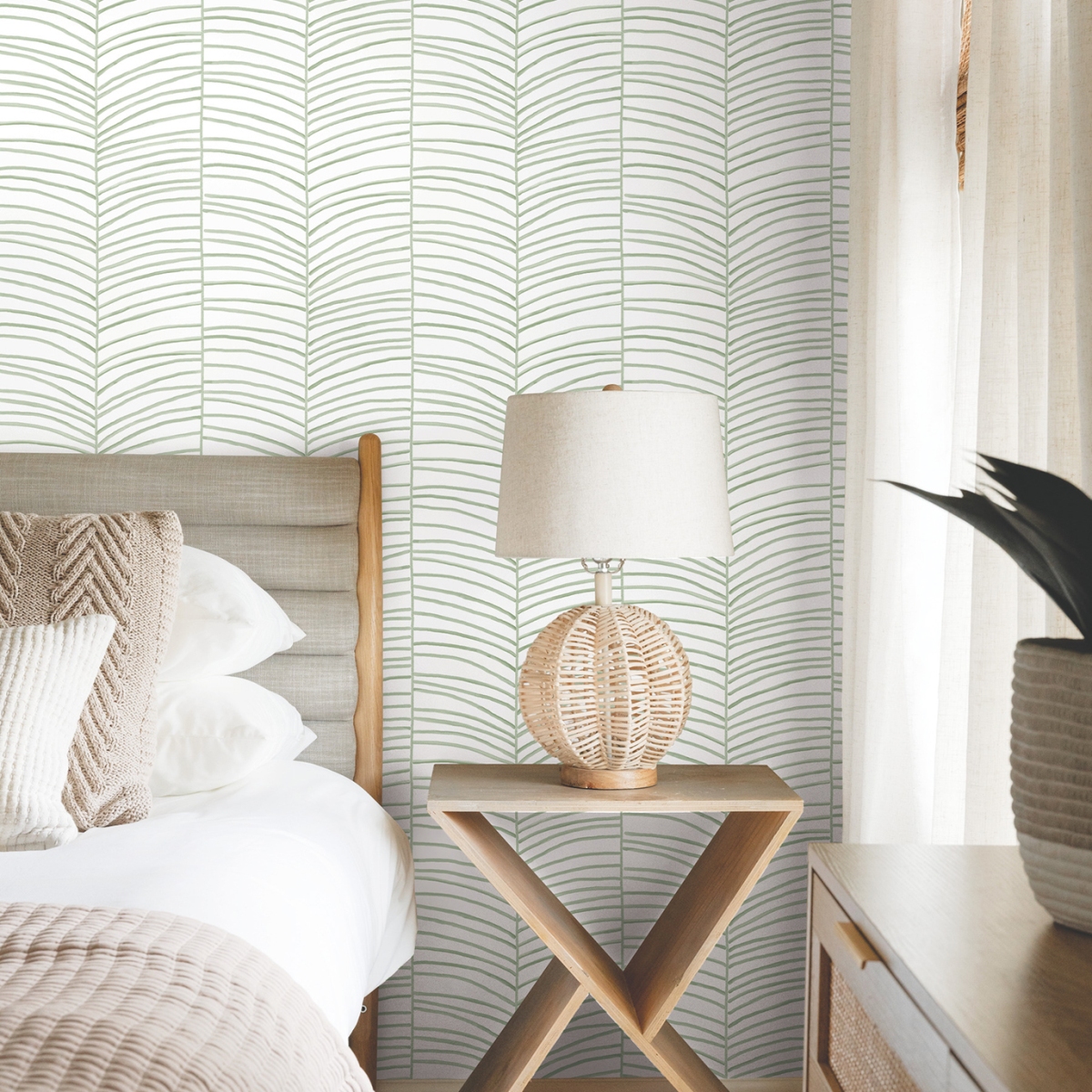 Вневременной узор шеврон воплощен в тропическом рисунке пальмовых листьев Cascade Palm Chevron.