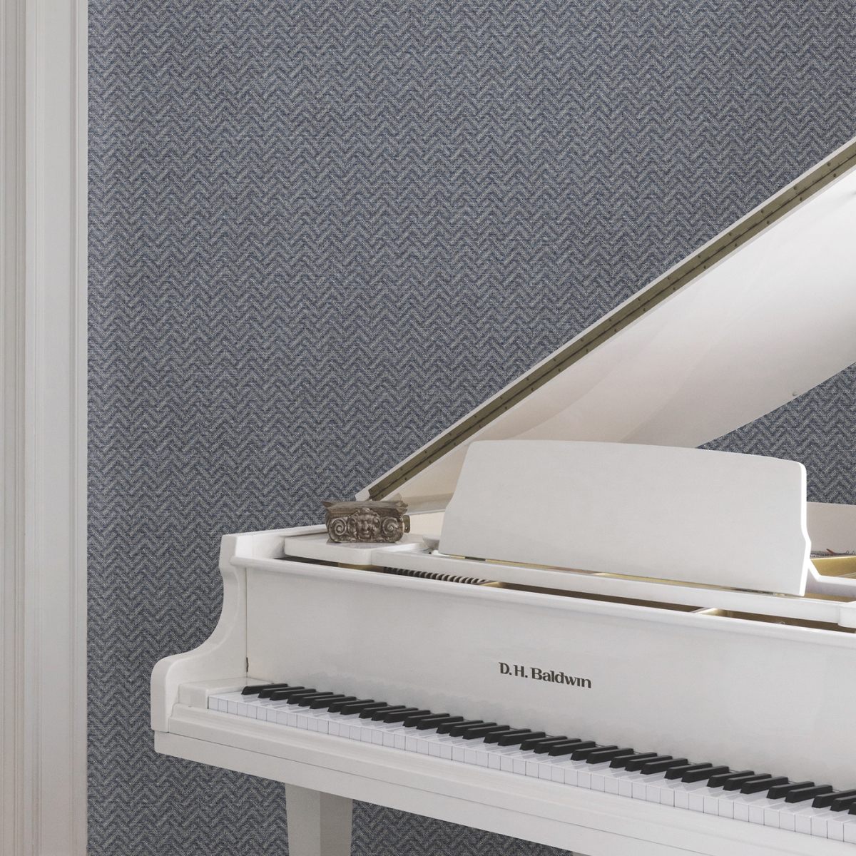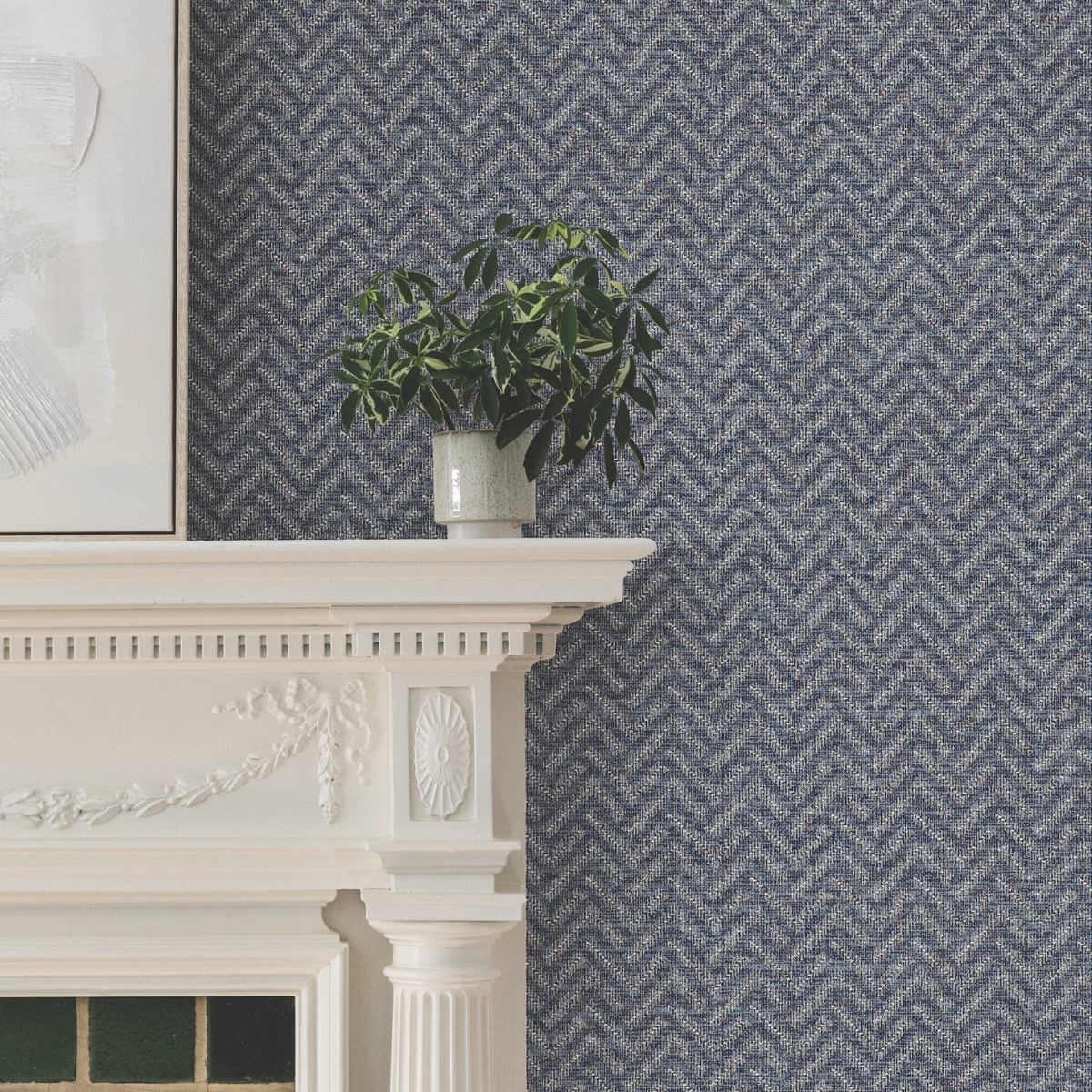 Вневременной узор шеврон изыскано представлен в современном прочтении благодаря рельефным краскам на неоднородном фоне.
