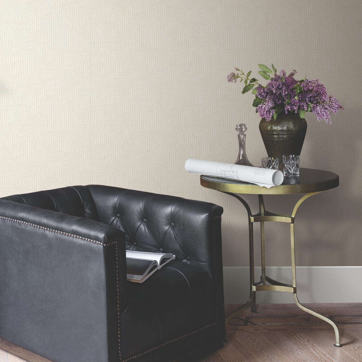 Непрерывные мазки кисти в узоре Passages образуют извилистый лабиринт. Дизайн выполнен в технике печати Surface Print