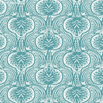 Экзотический рисунок Lotus Palm в технике печати Surface print и поднятые краски максимально создают атмосферу ручного труда. Монохромное силуэтное исполнение усиливает историческое происхождение узора.