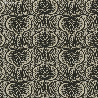 Экзотический рисунок Lotus Palm в технике печати Surface print и поднятые краски максимально создают атмосферу ручного труда. Монохромное силуэтное исполнение усиливает историческое происхождение узора.