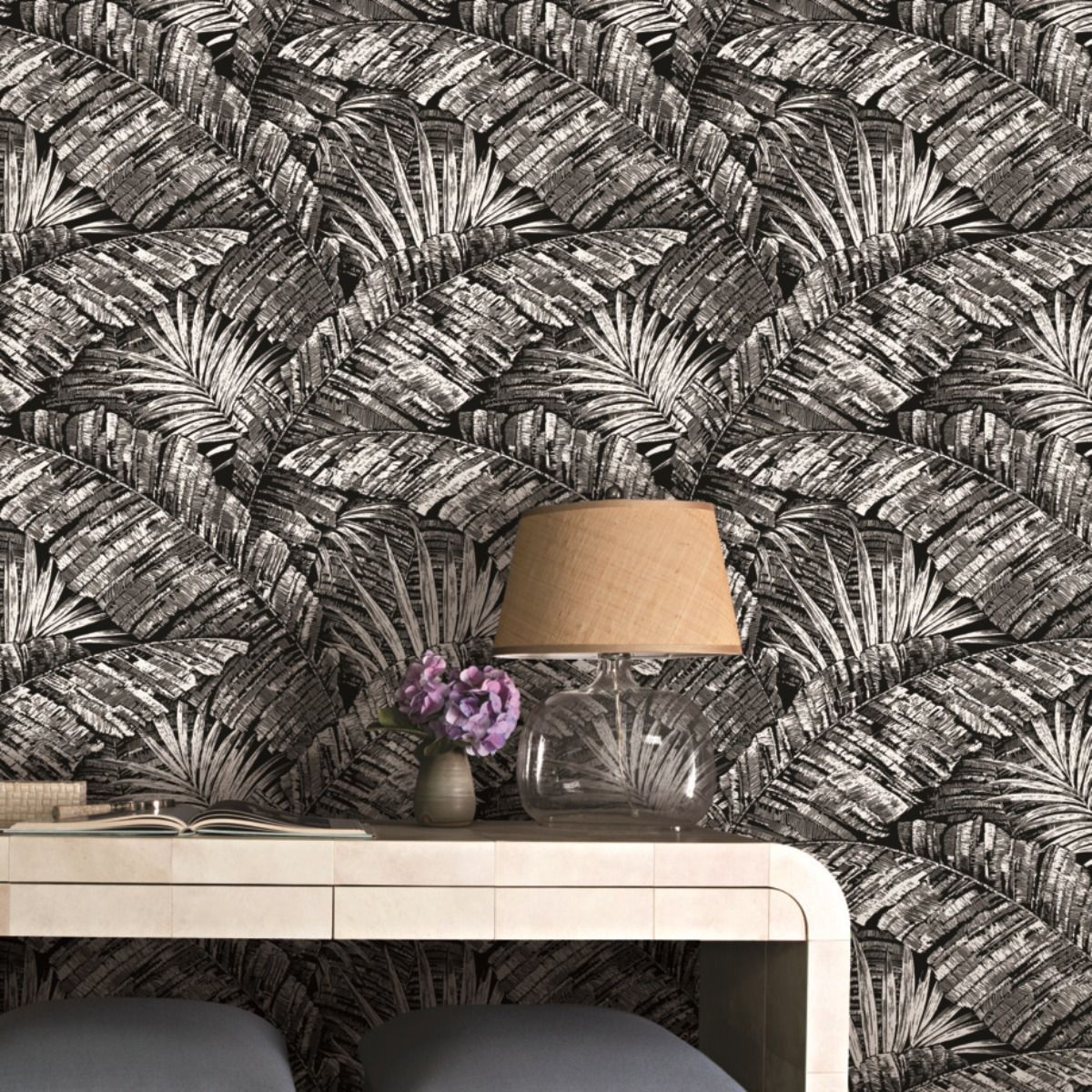 Многослойный рисунок из крупных тропических листьев Palm Cove Toile создаст стильное и уединенное место для отдыха от окружающего мира.