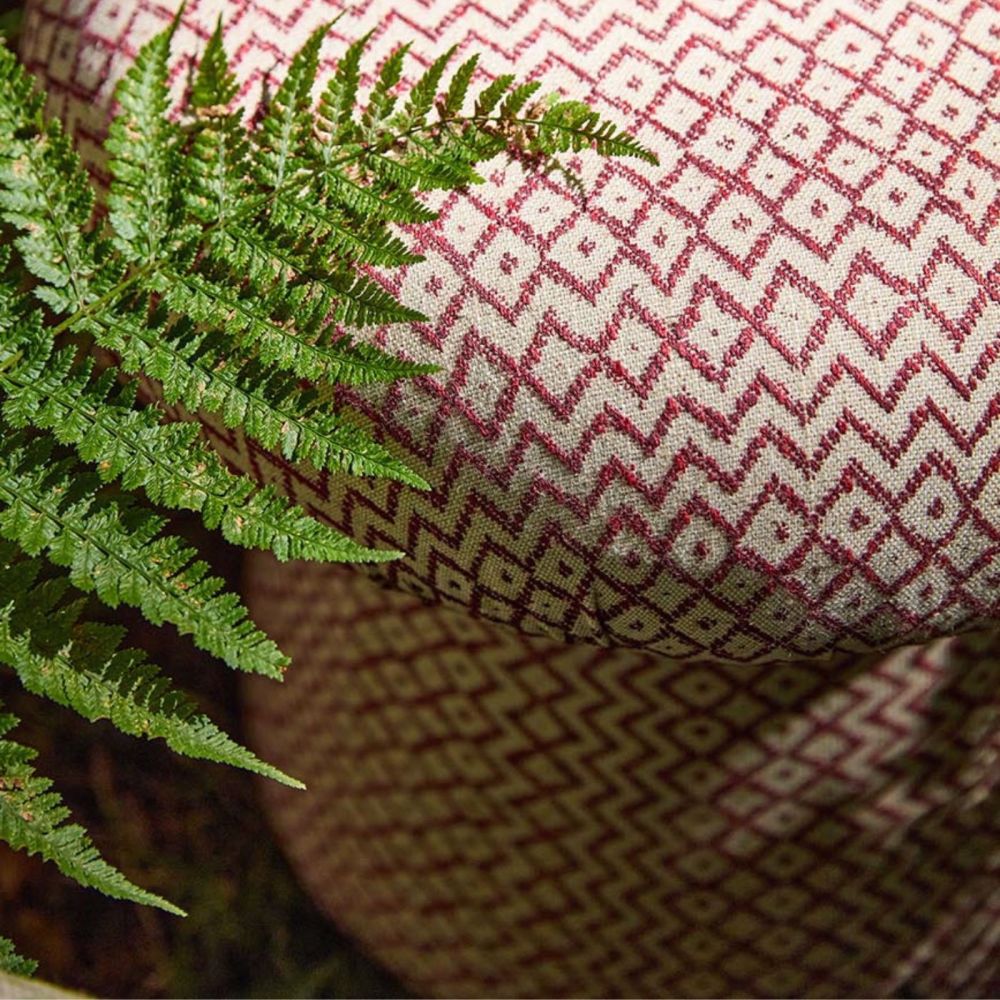 Чеслин остается фаворитом бренда Sanderson. Этот изящный узор из переплетающихся ромбов и зигзагообразных линий, выполненный в мелком масштабе, был взят из архивного образца африканской ткани. На первый взгляд дизайн кажется монохромным, но при ближайшем рассмотрении обнаруживаются незначительные тоновые изменения в утке, придающие детали и интерес к богатой текстуре.