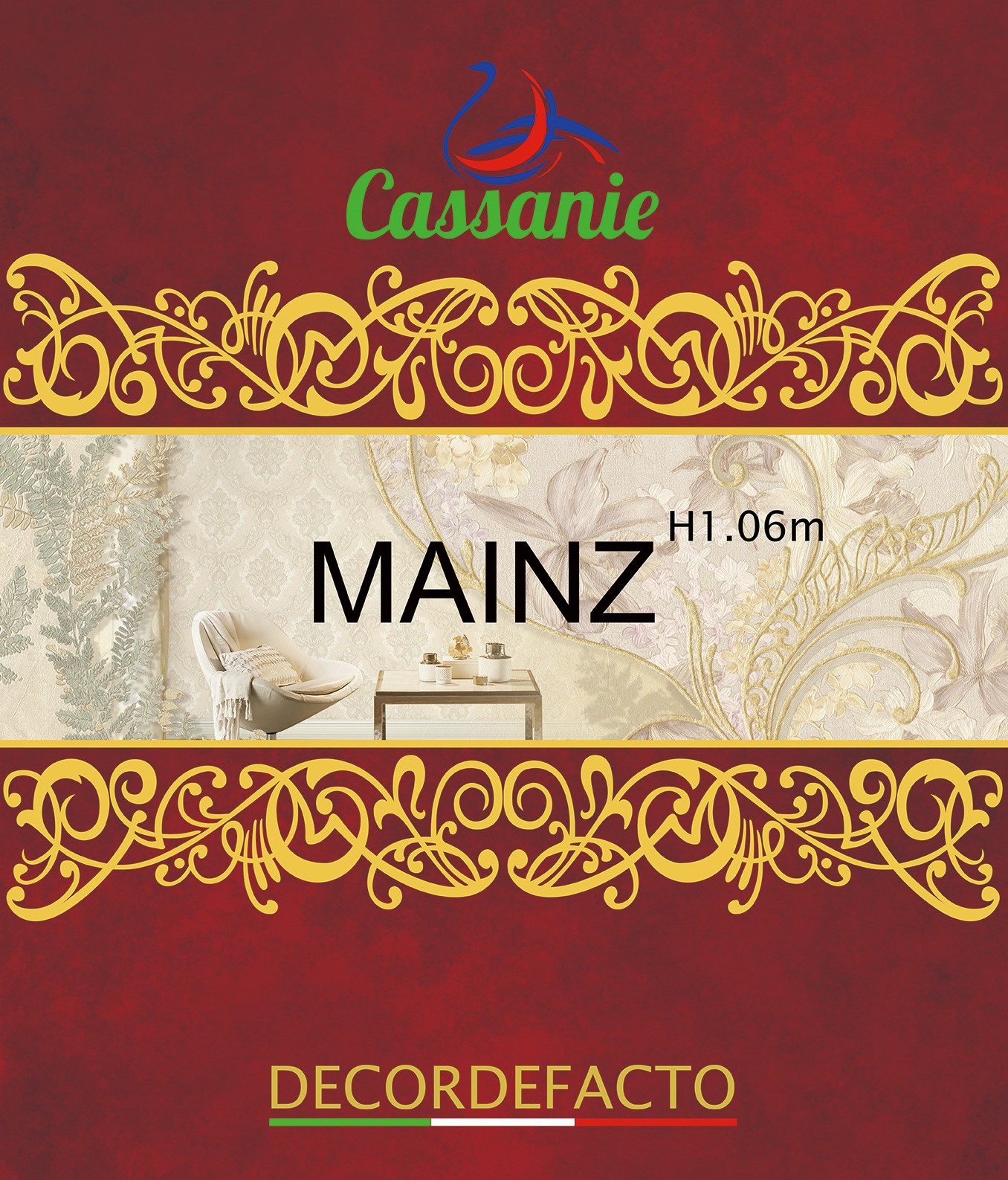 Обои Cassanie Mainz производятся в Китае и имеют размер рулона 1,06x10,05 м.